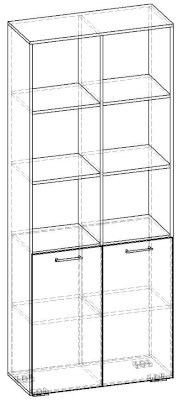 Применение задней стенки из ЛДСП (в ячейках с фасадами) позволяет использовать данный стеллаж для зонирования пространства (чтобы предотвратить опрокидывание, необходимо обеспечить крепление стеллажа к стене).