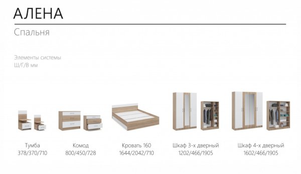 Модульная спальня Алена Дуб Сонома/Белый (Империал)
