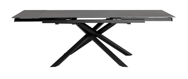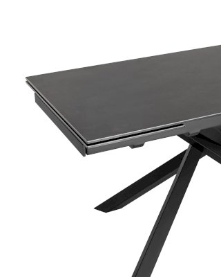 Обеденный стол Альянс с раскладной столешницей. Прямоугольная столешница выполнена из цельной керамики. Материал долговечен, устойчив к термическим и механическим воздействиям. При необходимости длину стола можно увеличить за счет спрятанных по бокам раздвижных элементов. Раздвижной механизм прост в использовании и не требует много времени для сборки. Металлические ножки надёжно удерживают всю конструкцию и придают столу оригинальный вид. Обеденный стол Альянс впишется в любой интерьер в современном стиле и станет украшением кухни и обеденной зоны.