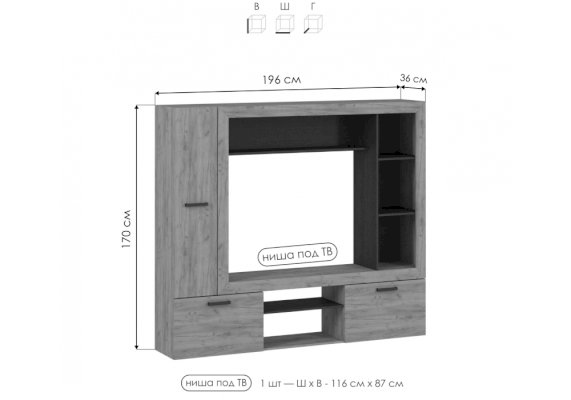 Ниша под ТВ: 116 х 87 см