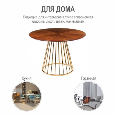 Стол Liverpool, со столешницей, выполненной в роскошном оттенке "орех", с золотистыми ножками идеально впишется в любой современный интерьер. Этот незаменимый и функциональный предмет мебели придется по вкусу не только людям творческим, поклонникам ультрамодных стилей винтаж или лофт, но и более сдержанным натурам, предпочитающим лаконичность и минимализм. Стол Liverpool имеет удобную высоту и способен выдерживать нагрузку до 100 килограммов.