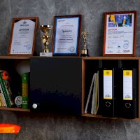 Навесной шкафчик с открытыми и закрытыми нишами, полками - удобный способ настенного хранения самых разных вещей. Универсальный модуль ЛОЙС 88 можно навесить на уголки как горизонтально, так и вертикально. В вертикальном положении рекомендуем использовать шкаф как функциональную надстройку для тетрадей и учебников.