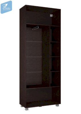 Шкаф с выдвижной штангой двустворчатый, состоит из отсека с выдвижной штангой под одежду (длинна штанги 350 мм), расположенного между двух полок, сверху и снизу, за счёт которых шкаф получает 2 дополнительных отсека для хранения.
