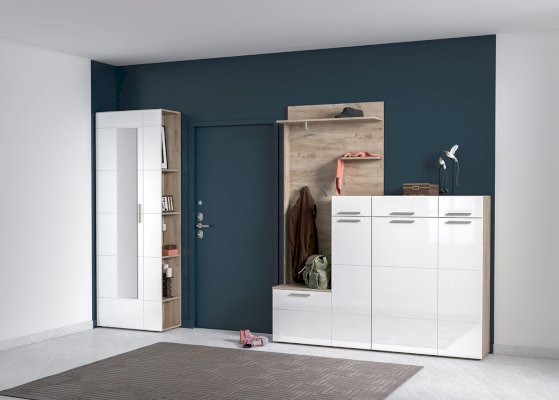 Универсальный модуль этой прихожей может быть дополнен шкафом для одежды.