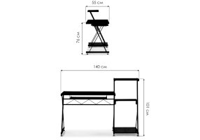 Компьютерный стол Kros - это удобный и функциональный стол для работы с компьютером. Каркас стола выполнен из прочного металла, что обеспечивает надежность и долговечность конструкции. Столешница изготовлена из стекла, что придает столу современный и элегантный вид. К столу прилагается полка для системного блока и другой оргтехники, что позволяет удобно разместить все необходимое оборудование. Три полки расположены справа от столешницы и обеспечивают дополнительное пространство для хранения книг, документов и других предметов. Размеры стола не слишком большие, что позволяет использовать его в небольших помещениях. В целом, стильный дизайн и функциональность стола Kros делают его прекрасным выбором для работы с компьютером в домашнем или офисном пространстве.