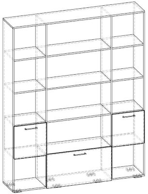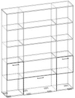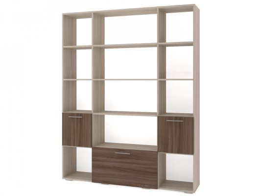 Применение задней стенки из ЛДСП (в ячейках с фасадами) позволяет использовать данный стеллаж для зонирования пространства (чтобы предотвратить опрокидывание, необходимо обеспечить крепление стеллажа к стене).