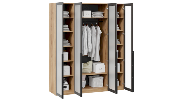Шкаф для одежды 580 со стеклянными дверями Порто СМ-393.07.114 (ТриЯ)