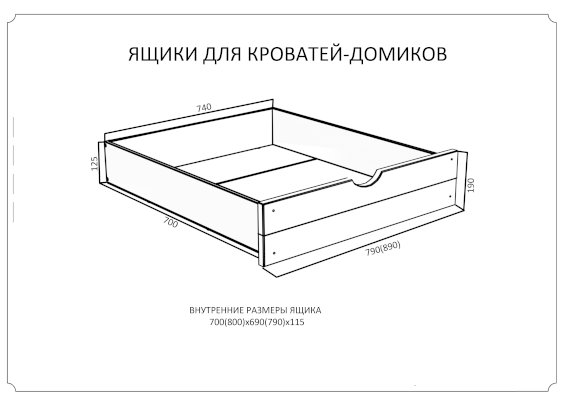 Внутренние размеры ящика (ШхГхВ): 700(800)х690(790)х115.