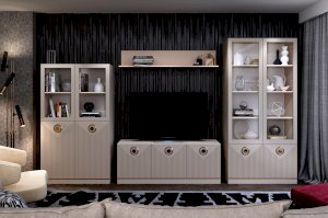 Мебель очень функциональна и будет очень эффектно смотреться в композиции, например , можно составить стенку - горку, где модули имеют разную высоту, для этого вам потребуется дополнительно витрина 450 и тумба Капри.