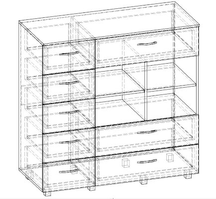 Данное изображение представлено в следующих цветах ЛДСП: корпус - Маслина Севилья тёмная, фасады - Маслина Севилья светлая.