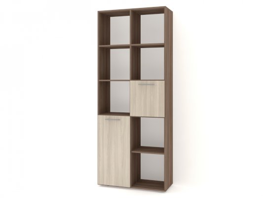 Применение задней стенки из ЛДСП (в ячейках с фасадами) позволяет использовать данный стеллаж для зонирования пространства (чтобы предотвратить опрокидывание, необходимо обеспечить крепление стеллажа к стене).