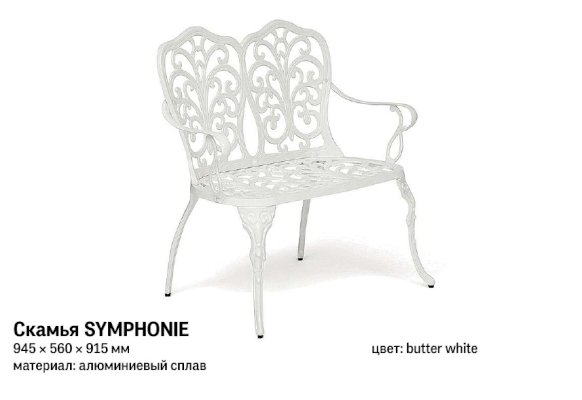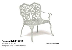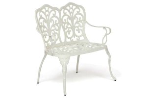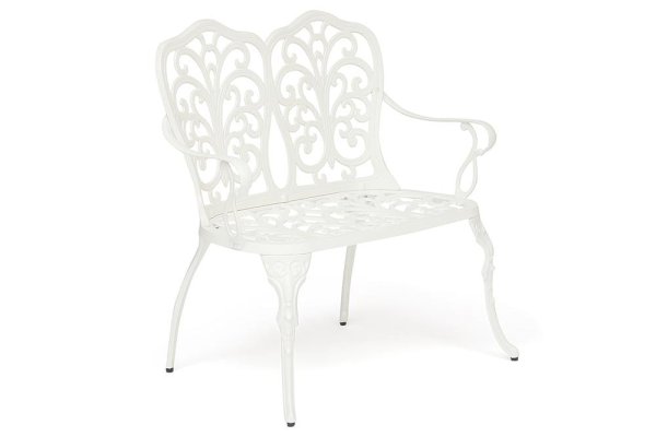 Изысканная садовая скамья Secret De Maison Symphonie из коллекции JARDIN будет прекрасно смотреться в загородном доме, на дачной веранде, отлично подойдёт для отдыха на приусадебном участке. Высокое качество и красота неповторимых ажурных узоров, выполненных вручную, добавит благородства в ваш ландшафтный дизайн, подчеркнет вкус и статус своего владельца. Эргономичная спинка и удобные подлокотники помогут создать уютное и комфортное место для отдыха на свежем воздухе. Эта функциональная, прочная и красивая скамья займет важное место в оформлении вашего сада. Прочный каркас, выполненный из литого алюминия и покрашенный в светлый цвет, надежен, устойчив к любым погодным условиям, способен выдерживать большие нагрузки. Изделие прекрасно сочетается с мебелью из коллекции JARDIN, поставляется в разобранном виде.