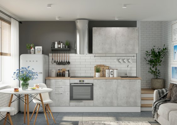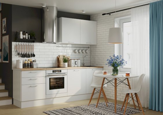 Корпус и фасад поставляются в отдельных упаковках, что дает возможность комбинировать в одной кухне разные фасады.