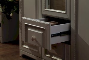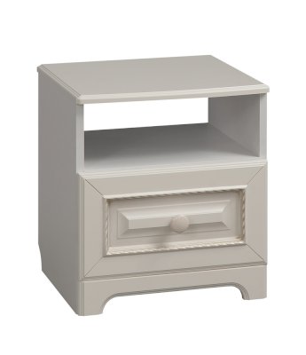 Нет ничего лучше, чем сочетание красоты и практичности, шкаф «Белла» тому доказательство. Фасады шкафа выполнены в нежном оттенке джелато, дверцы украшены фрезеровкой, а ручки – декоративными кистями. Прикроватная тумба – самый маленький, но в то же время незаменимый модуль серии «Белла». Используйте его как подставку для ночника, а также для хранения самых необходимых вещей как в открытой нише, так и в закрытом выдвижном ящике.
