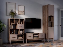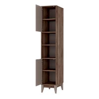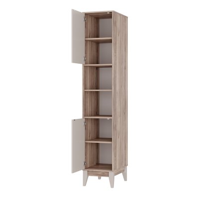 Стильный и функциональный пенал «Скандика» - незаменимый предмет мебели в гостиной или личной комнате. Модель состоит из четырех полок, скрытых за дверцами и двух открытых полок, на которых можно разместить книги, документы, предметы декора, игрушки и одежду. Створки плотно фиксируются на магнитах.