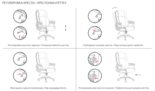 Тип механизма кресла: "топ-ган" качание с регулировкой под вес и фиксацией в 1 положении
