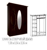 2 створки глухие, средняя с зеркалом.
