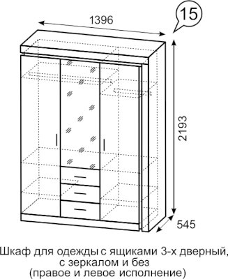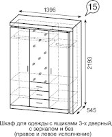 Шкаф для одежды с ящиками 3-х дверный с зеркалом №15