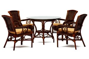 Комплект: стол со стеклом + 4 кресла + подушки