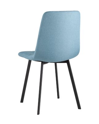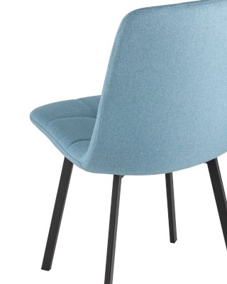 Классический обеденный стул без подлокотников на металлических ножках плоской формы. Внутренняя сторона сиденья и спинки украшена геометричной строчкой.