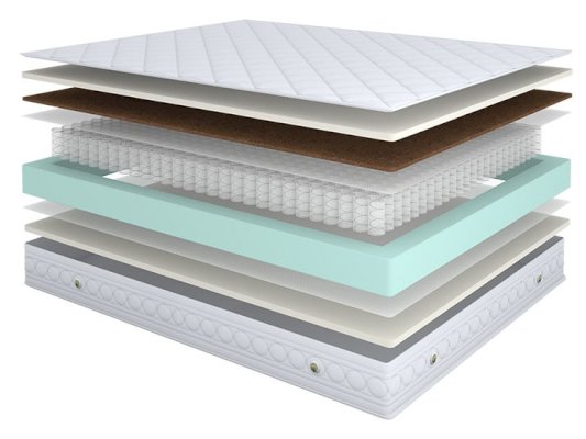 Наполнитель: Высокоэластичная пена ElasticFoam, кокосовая койра, НПБ 256 шт/кв.м., система усиления боковой поддержки, ППУ