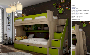 Кровать 2-х ярусная с лестницей из ящиков Киви модуль №1 (Террикон)