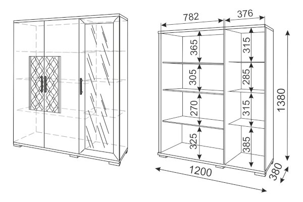 • Сервант можно собрать на левую или правую сторону.
