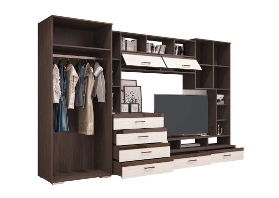 Функционал хранение посуды / хранение одежды / зона для ТВ