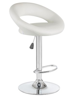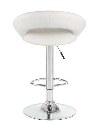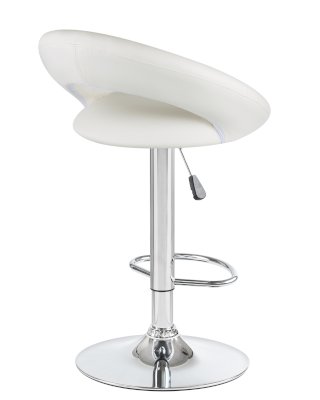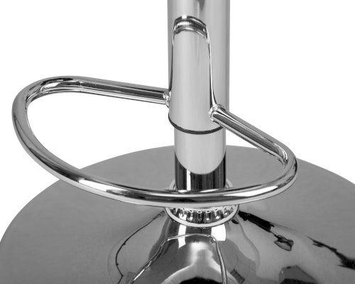 • Толстая ножка высокого барного стула, как и основание, имеет хромированное покрытие. Она удерживает сиденье с удобной полукруглой спинкой шириной 32 см и глубиной 41 см. Внутри него имеется мягкий наполнитель. Обивка выполнена из приятной на ощупь экокожи.