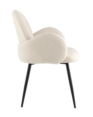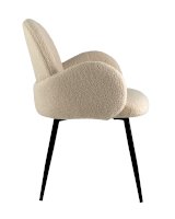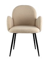 Комфортный стул с закругленной спинкой и мягкими подлокотниками. Обивка выполнена из мягкой и легкой ткани букле. Красивый и очень мягкий материал, который оставляет ощущение теплоты и уюта. Прочная конструкция выдерживает нагрузки до 120 кг. Плавные линии и широкое сиденье обеспечат удобство при посадке. Лаконичный дизайн стула дополнит любой интерьер и будет прекрасно смотреться в комплекте с обеденным столом.