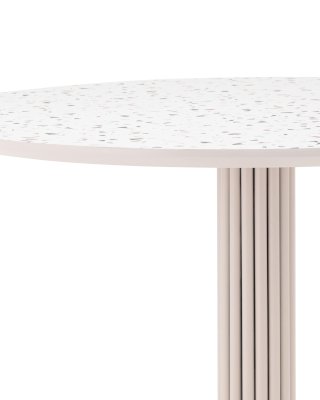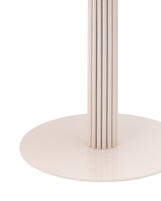 Столешница выполнена из прочного и долговечного МДФ. Светлая поверхность столешницы гармонично сочетается с надёжной основой. Простая круглая форма стола позволит легко вписать его в современный интерьер, стол украсит кухню, гостиную или современное кафе, ресторан. Опорное плиссированное основание стола в лаконичном дизайне надёжно удерживает всю конструкцию и дополняет изящный образ.