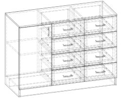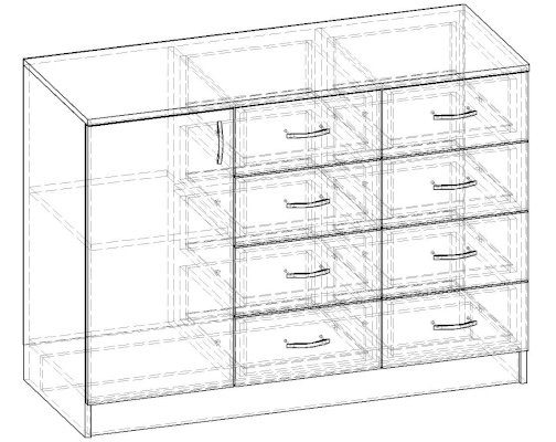 Данное изображение представлено в следующих цветах ЛДСП: корпус - Ясень Шимо тёмный, фасады - Ясень Шимо светлый.