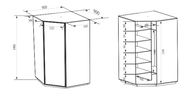 • Размер:(ШхГхВ) 900х900х2400