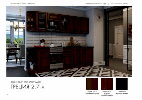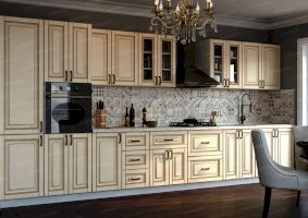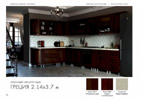 Специально для тех, кто отдает предпочтение классическому дизайну, создана кухня «Греция». Правильные пропорции, отделка естественных цветов и фактур, элегантное декорирование смотрятся беспроигрышно. Из элементов этой модульной системы удается собрать комплект для помещений различной площади и планировки. Готовый гарнитур может быть как угловым, так и прямолинейным.