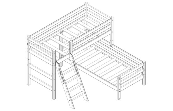 Вариант 8 Угловая кровать СОНЯ с наклонной лестницей