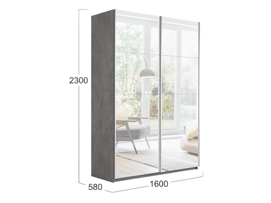 Двухдверный шкаф-купе с 2 зеркалами Траст 1600 (Трия)