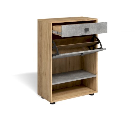 Узкая высокая обувница из набора модулей прихожей Мини-лайт включает ящик для средств ухода за обувью, обувницу с откидной крышкой и две полки под обувь. Не смотря на компактные размеры вместительна и функциональна.