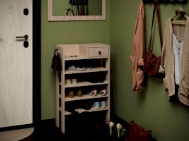 Удобная и функциональная тумба для прихожей, помимо полочки для обуви имеет поднимающееся сиденье с пространством под мелкие предметы. Ваши обувные щетки и крема теперь не будут разбросаны по прихожей, а будут аккуратно находиться на своем месте.