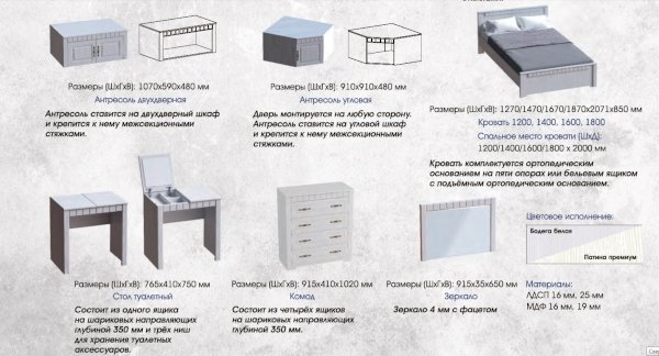 Модульная спальня Прованс (МБГ) - за 42 843 руб. в Казани. Купите на сайте kazan.onlinemarketmebeli.ru или по телефону 8(800)505-30-63 уже сегодня! Уточнить наличие, комплектацию, актуальную цену можно бесплатно у менеджера ежедневно. Закажите Модульная спальня Прованс (МБГ) до конца акции! Доступна покупка в кредит, рассрочку. Доставим со склада или на заказ.