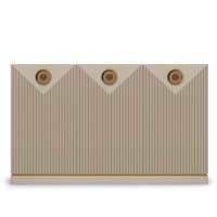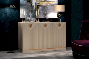 Нарядный, и в тоже время, выполненный в спокойной кремовой палитре большой комод прекрасно впишется в интерьер спальни или гостиной. Его габариты позволят использовать комод в качестве ТВ-тумбы. Сочетать модуль можно с зеркалом, витринами или использовать как самостоятельный предмет мебели.