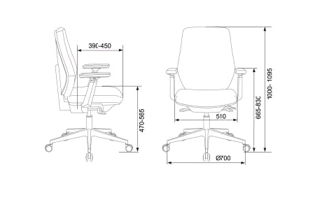 Высота с подлокотниками: 665-830