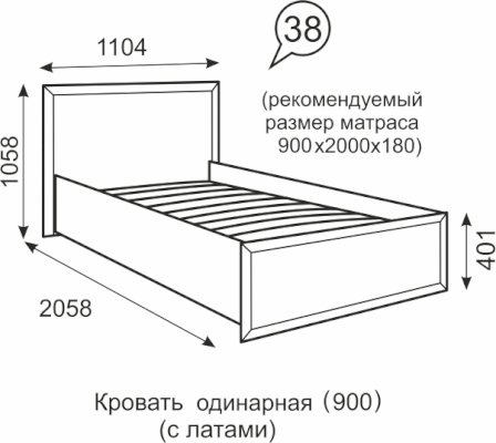 900х2000 мм с латами